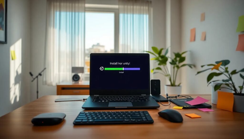 Para descargarlo, visita la página oficial de Unity. Allí, encontrarás una opción clara para descargar Unity Hub. Solo necesitas hacer clic en el botón de descarga y seguir las instrucciones que aparecerán en pantalla. Al finalizar, se iniciará el proceso de instalación.